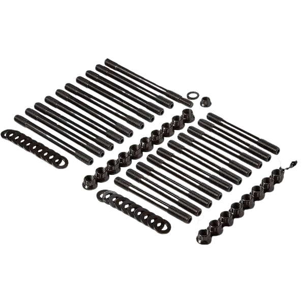 The studs are manufactured in ARP's Santa Paula, CA plant from proprietary ARP 2000 material, with threads rolled after heat-treat to provide optimum fatigue strength. They are center-less ground to assure perfect concentricity. The ends of the studs are broached to facilitate easy installation. This feature also enables the cylinder head to be removed in tight quarters. Also included in each kit are heat-treated, chrome-moly steel 12-point nuts and parallel-ground washers. They are black oxide finished for extra durability.