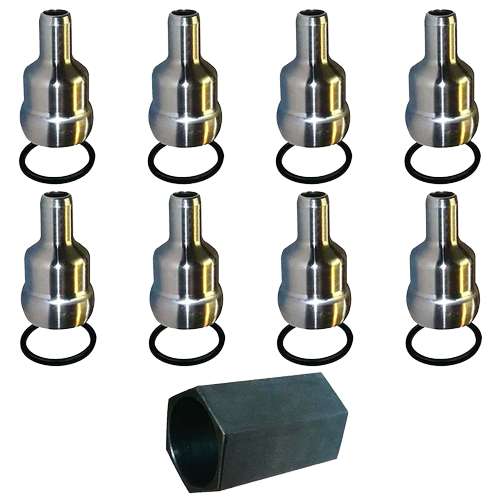 The Bostech DEC021616 High-Pressure Oil Rail Ball Tube (Set of 8) connects the fuel injectors to the high pressure oil rails in your Ford Powerstroke. Also included in this kit is an oil rail ball tube installation tool. This tool is needed to install the ball tubes and works as an alignment tool. Leaking O-ring seals in the oil pressure manifold will allow high pressure oil to blow by the base of the ball tube that connects to the injector. Oil traveling into the opening of the connection will blast away at the injector seal until it eventually fails. Eventually the seals can begin to leak which can cause hard start or no start conditions. All Bostech products are designed to maintain or exceed OE specs.
