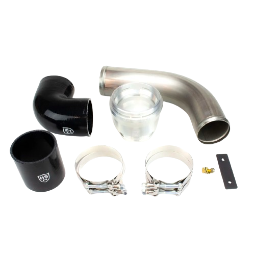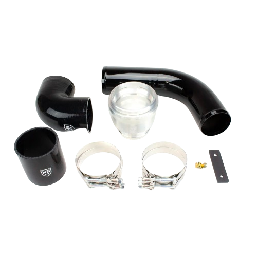 H&S Motorsports is proud to introduce the Intercooler Pipe Upgrade Kit for the 2011 - 2023 6.7L Ford Powerstroke. This kit allows you to replace the factory plastic (yes, plastic) intercooler pipe with a high quality bead-rolled metal pipe or silicone pipe. While that may seem simple, there are other crucial components included in the kit to allow a quick, easy installation. Since the OEM pipe snaps onto the factory air intake valve rather than using a traditional clamp, we include a beautiful CNC-machined aluminum piece that snaps into the OEM location. Also included with the kit are all the brackets, clamps, and hardware required to complete the installation quickly and painlessly.