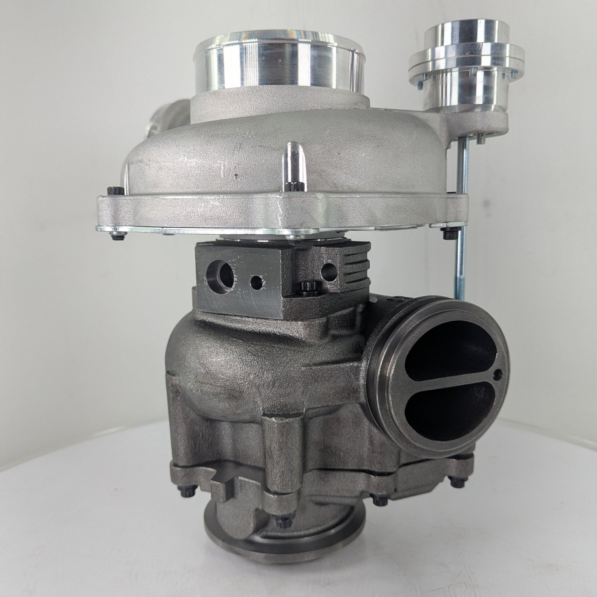 The Turbine Wheel also takes design notes from the 366SX-E but its larger diameter offers more flow and increased strength through the introduction of thicker blades, a thicker hub, and a thicker rear webbing making it much less prone to fatigue and wheel burst. The redesigned dual ball bearing center housing has been modified to accept the turbine’s increased shaft thickness from a 6.4mm on the original to 7.5mm for increased strength and longevity.