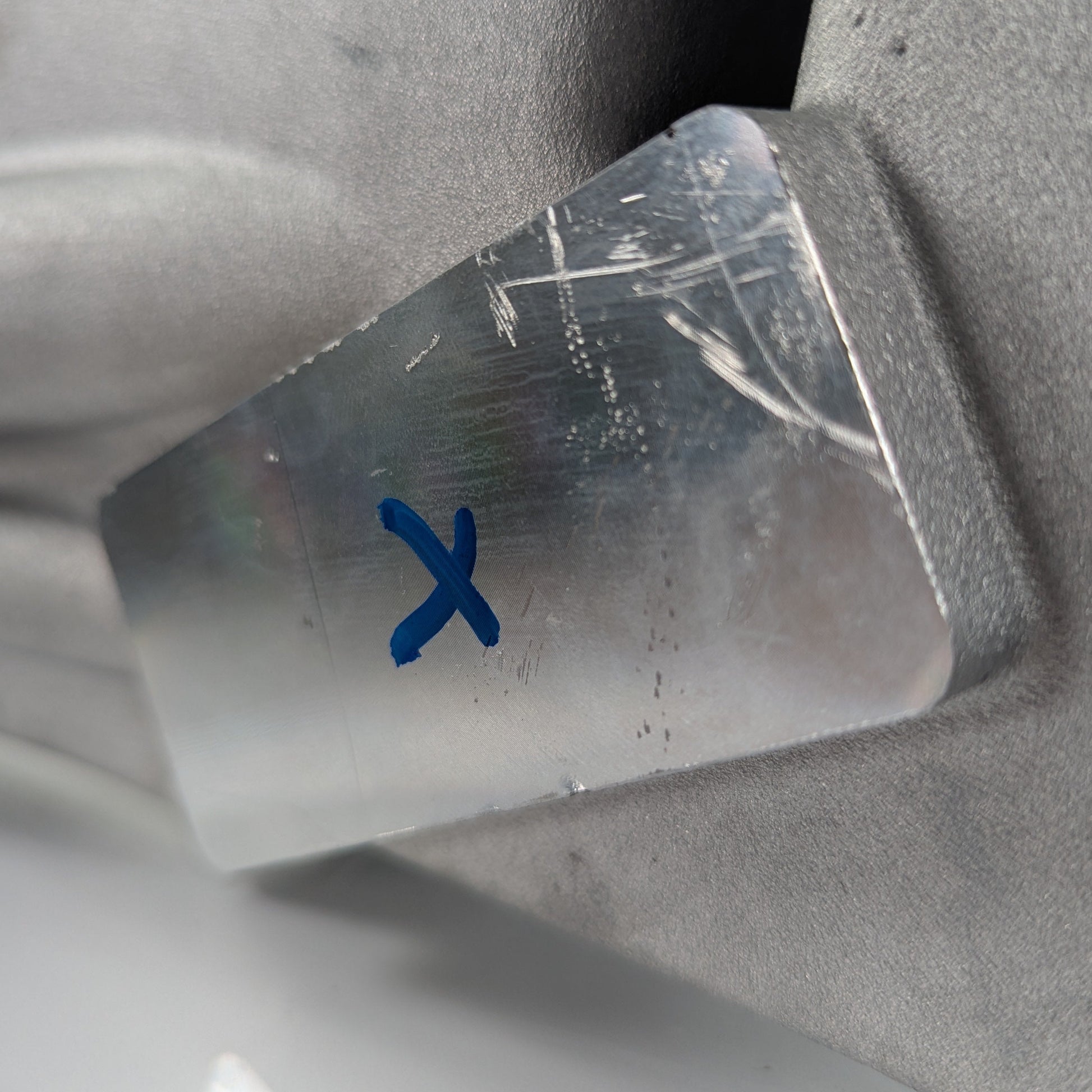 Scratch and dent, see blue circles and x's
